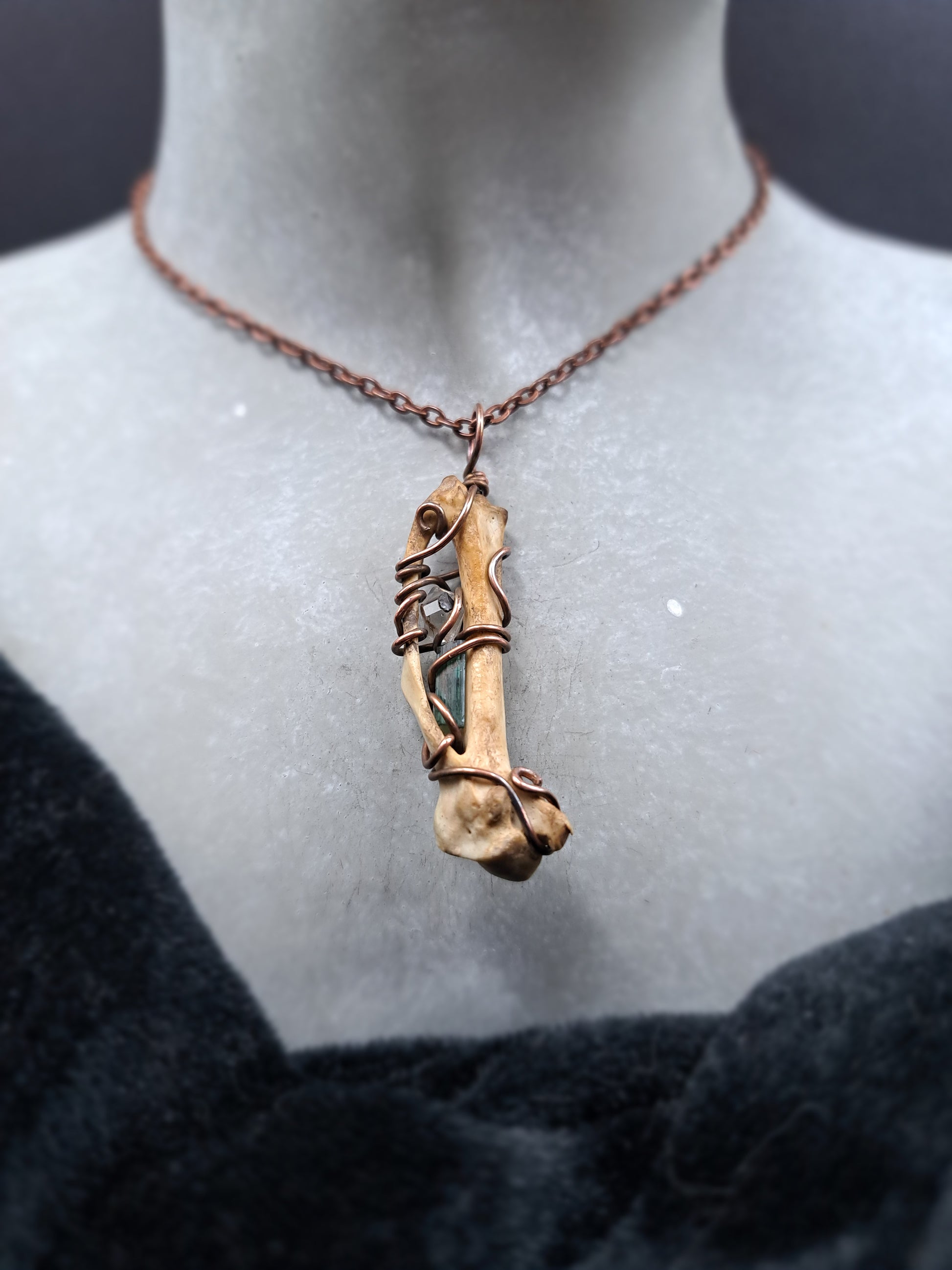 Fasanenknochen mit Indigolith und Herkimer-Diamant "Hüter der Indigoseele"