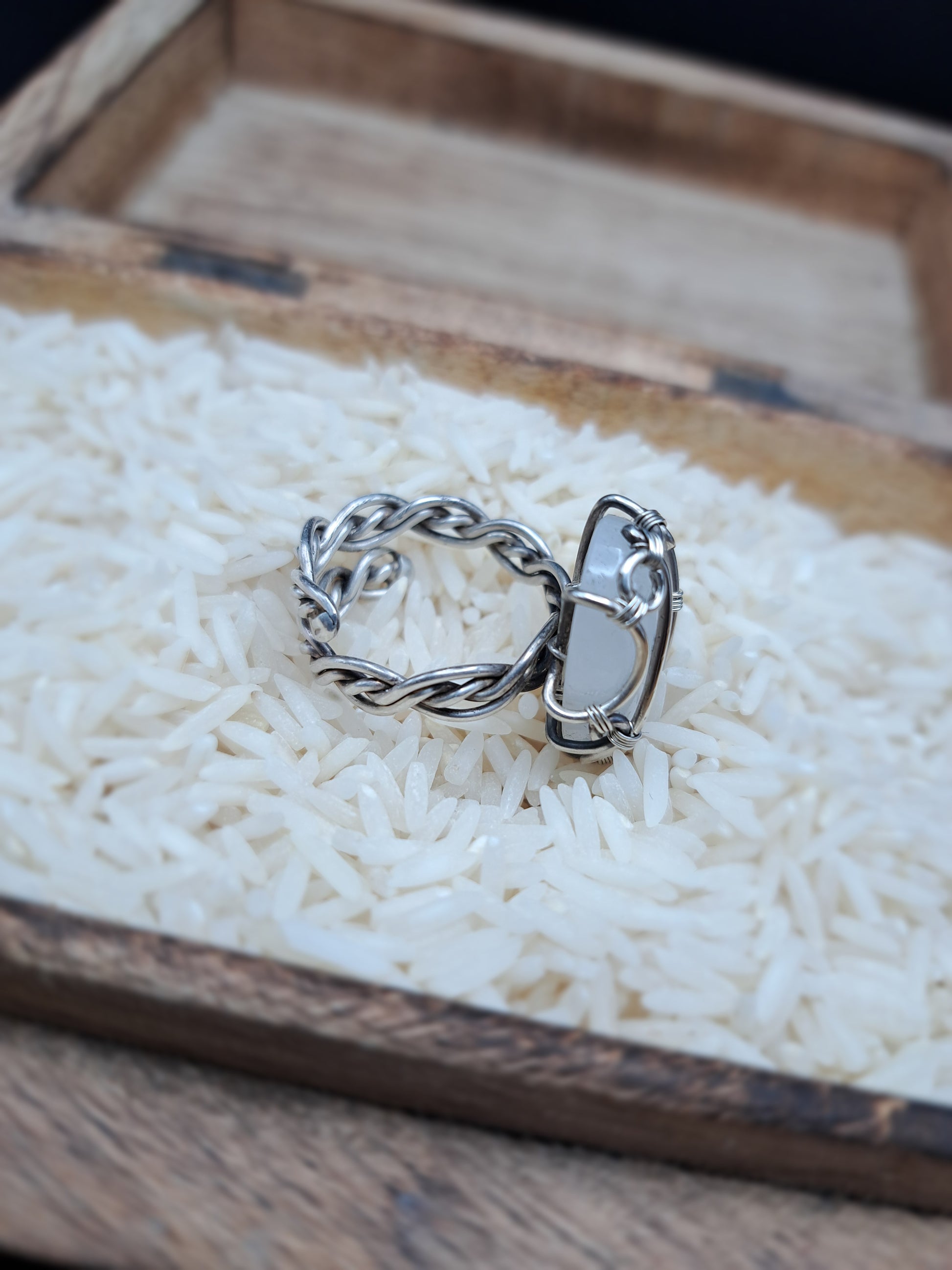 In Verbindung mit Silber entfaltet sich seine klärende, reflektierende Energie – ein stilles Licht, das in der Dunkelheit den Weg zeigt.